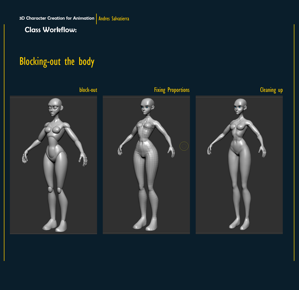I'm going to start the course by covering the fundamentals of art, then we're going to move on to creating the character chart for our project. We are going to learn how to start the body lock in Zbrush, starting with the basic shapes until we have a sculpture of which we feel comfortable with the quality.