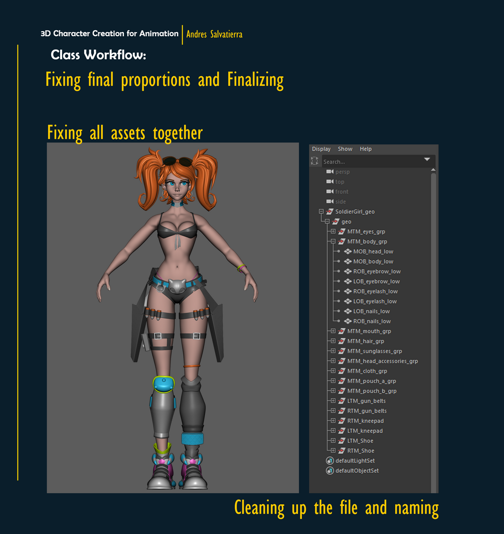 Una vez listo, vamos a trabajar con el modelado del resto del personaje hasta terminar con las proporciones finales y limpiando nuestro archivo final.