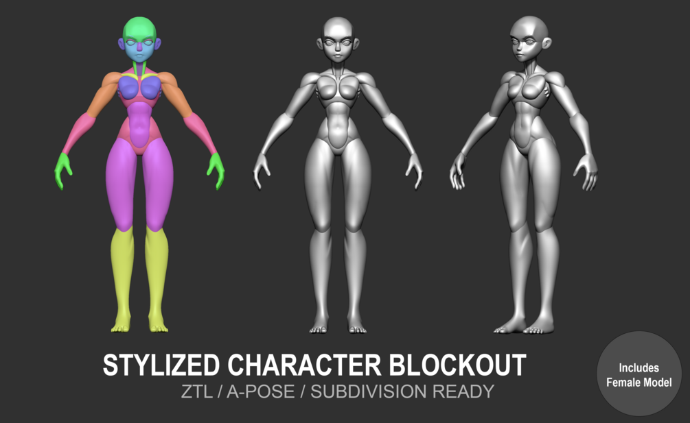 Stylized Female Blockout Pack (ZBrush ZTL)